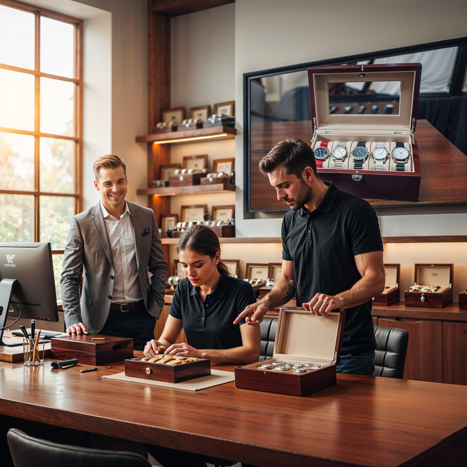 Nous proposons une collection raffinée de boîtes à bijoux, coffrets à montres, remontoirs automatiques et étuis de voyage. Chaque pièce est conçue pour allier élégance, praticité et durabilité, afin de protéger et sublimer vos trésors personnels.